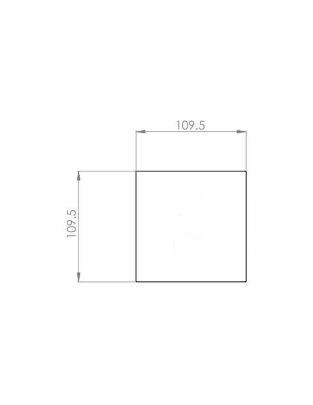 Dimensions façade : env. 109,5 × 109,5 mm, épaisseur inox ~ 1,5 mm.