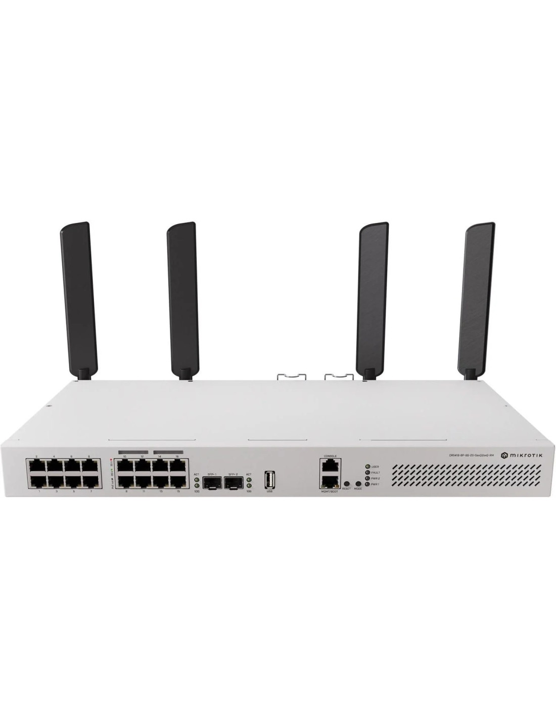 MikroTik CRS418-8P-8G-2S+5AXQ2AXQ-RM – switch PoE administrable avec Wi-Fi 6 intégré, 8 ports PoE, 8 ports Gigabit, 2 ports SFP+ 10G, solution réseau complète rackable.